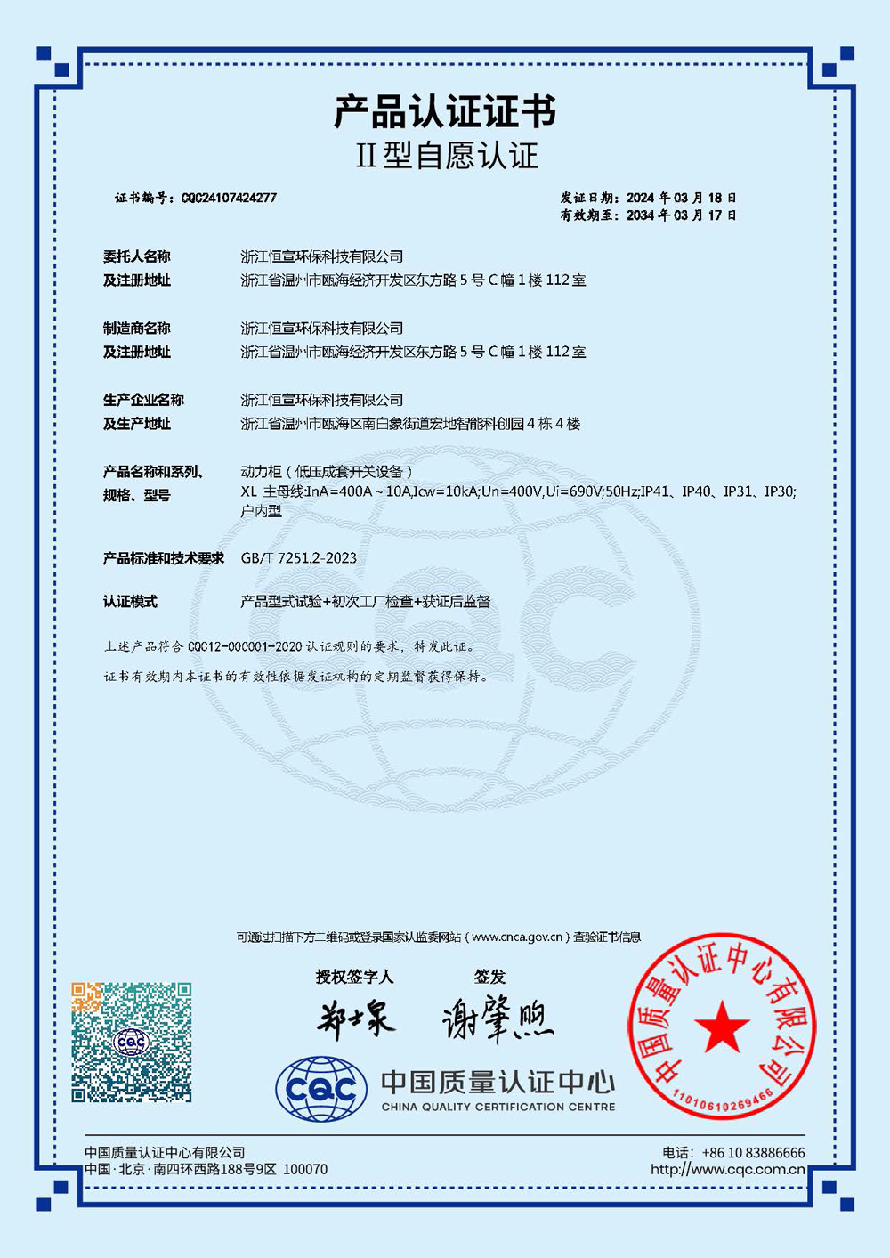 产品认证证书