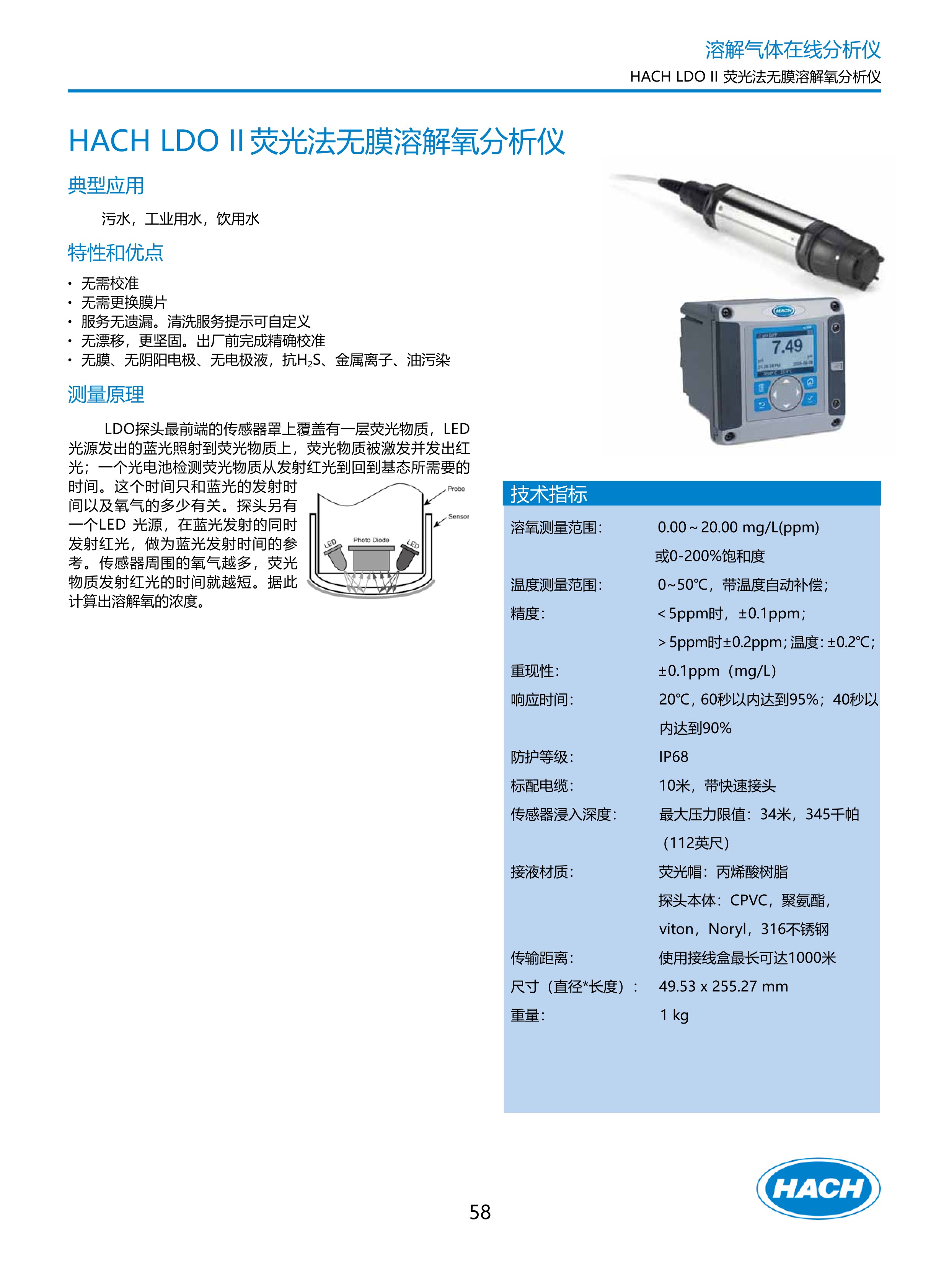 HACH LDO荧光法无膜溶解氧分析仪